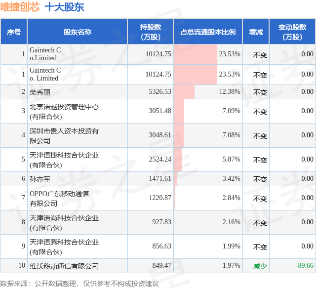 根据唯捷创芯2025年中报公布的十大股东详情如下: