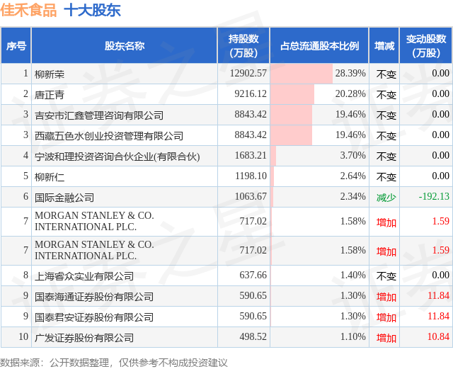 根据佳禾食品2025年中报公布的十大股东详情如下: