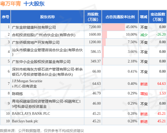 根据粤万年青2025年中报公布的十大股东详情如下: