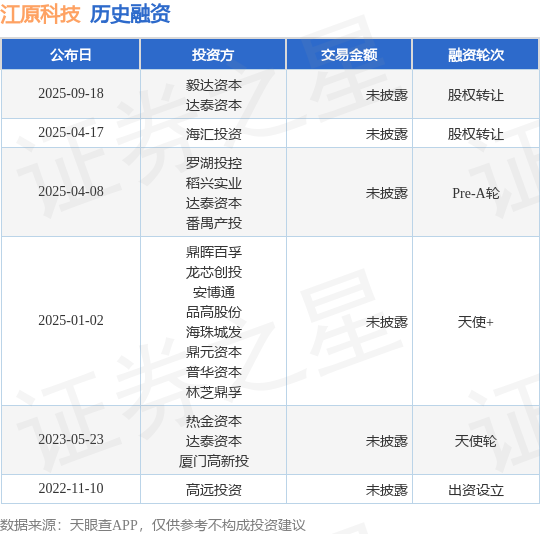 证券之星消息,根据天眼查APP于9月18日公布的信息整理,深圳江原科技有限公司股权转让融资,交易额未披露。