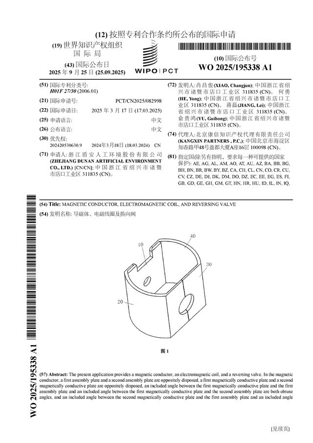 证券之星消息,根据企查查数据显示盾安环境(002011)公布了一项国际专利申请,专利名为“导磁体、电磁线圈及换向阀”,专利申请号为PCT/CN2025/082998,国际公布日为2025年9月25日。