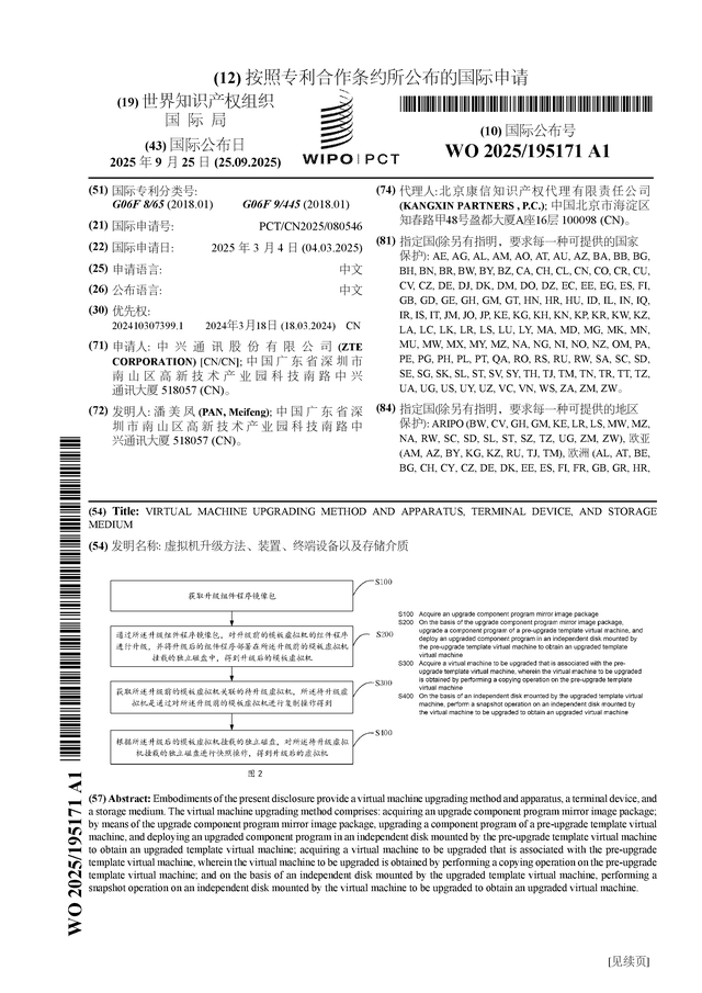 证券之星消息,根据企查查数据显示中兴通讯(000063)公布了一项国际专利申请,专利名为“虚拟机升级方法、装置、终端设备以及存储介质”,专利申请号为PCT/CN2025/080546,国际公布日为2025年9月25日。