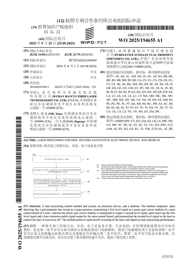 证券之星消息,根据企查查数据显示锐科激光(300747)公布了一项国际专利申请,专利名为“激光加工控制方法、系统、电子设备及介质”,专利申请号为PCT/CN2024/109099,国际公布日为2025年9月25日。