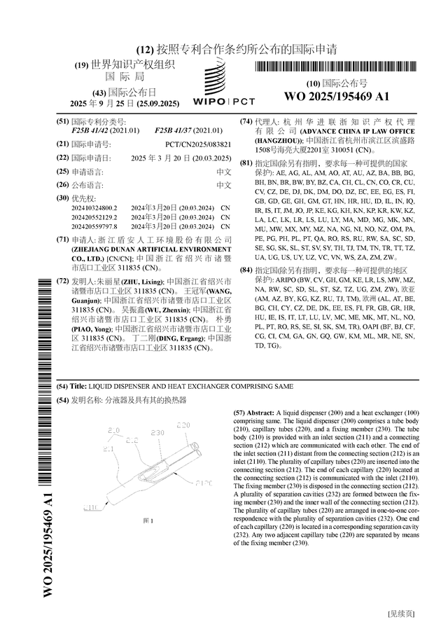 证券之星消息,根据企查查数据显示盾安环境(002011)公布了一项国际专利申请,专利名为“分液器及具有其的换热器”,专利申请号为PCT/CN2025/083821,国际公布日为2025年9月25日。