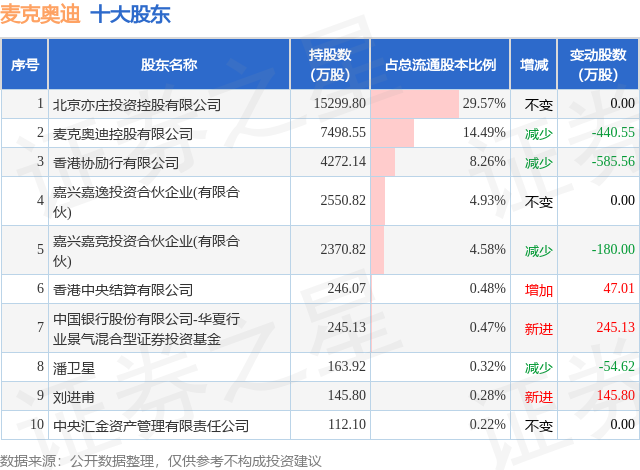 根据麦克奥迪2025年中报公布的十大股东详情如下: