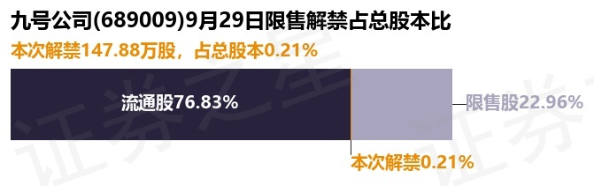 证券之星消息,根据市场公开信息整理,九号公司(689009)于9月29日将有147.88万股限售股份解禁,为公司股权激励期权行权,占公司总股本0.21%。(本次数据根据历史公告整理得出,实际情况以上市公司最新公告为准)最近一年内,该股累计解禁681.59万股,占总股本的0.95%。本次解禁后,公司还有1.65亿股限售股份,占总股本22.96%。具体如下图所示:
