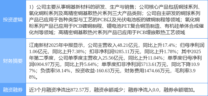 该股为有色 · 铜,PET复合铜箔,有色金属概念热股,当日有色 · 铜概念上涨3.54%,PET复合铜箔概念上涨2.47%,有色金属概念上涨2.42%。