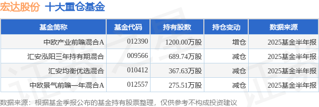根据2025基金半年报公募基金重仓股数据,重仓该股的公募基金共4家,其中持有数量最多的公募基金为中欧基金的中欧产业前瞻混合A。中欧产业前瞻混合A目前规模为14.66亿元,最新净值0.7248(9月26日),较上一交易日下跌0.85%,近一年上涨40.71%。该公募基金现任基金经理为李帅。李帅在任的基金产品包括:中欧瑾和灵活配置混合A,管理时间为2021年5月10日至今,期间收益率为42.08%;中欧景气前瞻一年混合A,管理时间为2021年8月13日至今,期间收益率为-17.62%;中欧高端装备股票发起A,管理时间为2022年11月14日至今,期间收益率为7.33%。