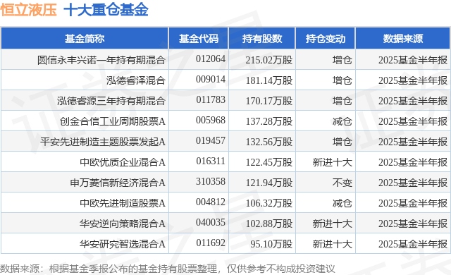 根据2025基金半年报公募基金重仓股数据,重仓该股的公募基金共115家,其中持有数量最多的公募基金为圆信永丰基金的圆信永丰兴诺一年持有期混合。圆信永丰兴诺一年持有期混合目前规模为20.93亿元,最新净值1.2451(9月26日),较上一交易日下跌2.92%,近一年上涨59.2%。该公募基金现任基金经理为胡春霞 浦宇佳。胡春霞在任的基金产品包括:圆信永丰消费升级,管理时间为2018年3月22日至今,期间收益率为73.89%;圆信永丰多策略,管理时间为2021年8月16日至今,期间收益率为-6.65%;圆信永丰弘阳股票A,管理时间为2022年9月23日至今,期间收益率为14.25%;浦宇佳在任的基金产品包括:圆信永丰科技驱动混合发起A,管理时间为2025年7月4日至今,期间收益率为36.97%。