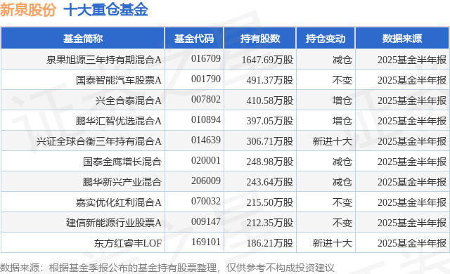 根据2025基金半年报公募基金重仓股数据,重仓该股的公募基金共58家,其中持有数量最多的公募基金为泉果基金的泉果旭源三年持有期混合A。泉果旭源三年持有期混合A目前规模为112.01亿元,最新净值1.0644(9月26日),较上一交易日下跌2.12%,近一年上涨60.18%。该公募基金现任基金经理为赵诣。