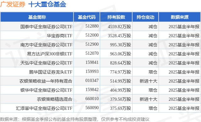 重仓广发证券的前十大公募基金请见下表: