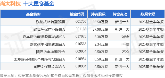 重仓尚太科技的公募基金请见下表:
