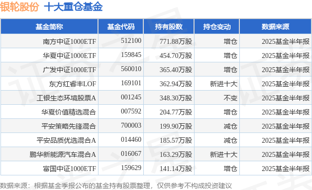 根据2025基金半年报公募基金重仓股数据,重仓该股的公募基金共59家,其中持有数量最多的公募基金为南方基金的南方中证1000ETF。南方中证1000ETF目前规模为649.53亿元,最新净值2.992(9月26日),较上一交易日下跌1.44%,近一年上涨53.37%。该公募基金现任基金经理为崔蕾。崔蕾在任的基金产品包括:南方中证申万有色金属ETF发起联接A,管理时间为2019年7月12日至今,期间收益率为137.64%;南方中证申万有色金属ETF,管理时间为2019年7月12日至今,期间收益率为144.6%;南方红利低波50ETF,管理时间为2020年1月17日至今,期间收益率为90.61%。