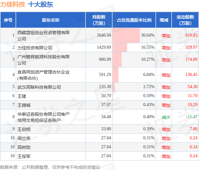 根据力佳科技2025年中报公布的十大股东详情如下: