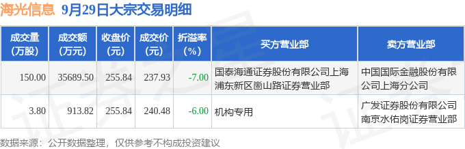 证券之星消息,9月29日海光信息发生大宗交易,交易数据如下:
