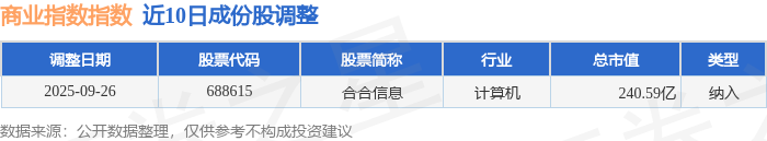 近10日内商业指数(000005)成份股做了调整,新纳入了1只股票。