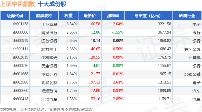 上证中盘(000044)指数十大成份股详情如下: