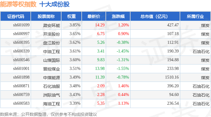 证券之星消息,9月29日,能源等权(000070)指数报收于2570.47点,跌0.46%,成交105.69亿元,换手率0.34%。当日该指数成份股中,上涨的有8家,石化油服以1.46%的涨幅领涨,下跌的有20家,平煤股份以3.41%的跌幅领跌。