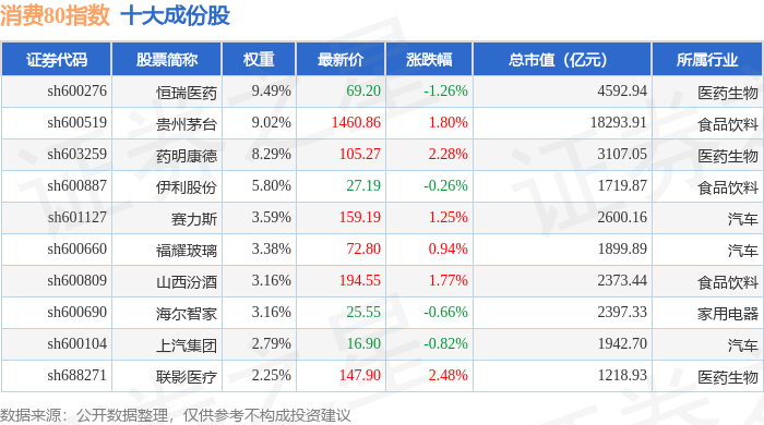 证券之星消息,9月29日,消费80(000069)指数报收于5310.48点,涨0.56%,成交719.24亿元,换手率1.13%。当日该指数成份股中,上涨的有39家,科博达以9.02%的涨幅领涨,下跌的有37家,春风动力以4.42%的跌幅领跌。