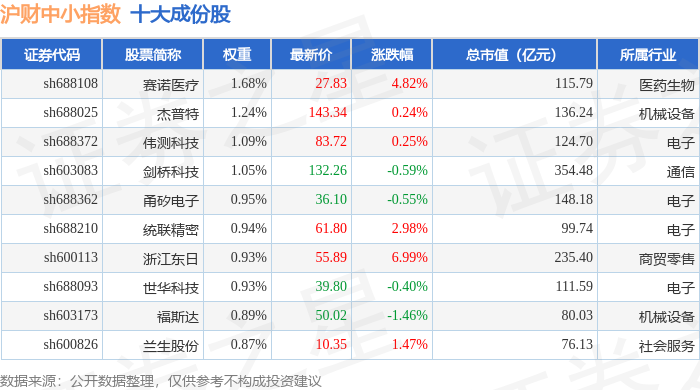 证券之星消息,9月29日,沪财中小(000091)指数报收于14476.02点,涨0.89%,成交525.74亿元,换手率2.41%。当日该指数成份股中,上涨的有135家,新黄浦以10.07%的涨幅领涨,下跌的有58家,新亚电子以4.95%的跌幅领跌。