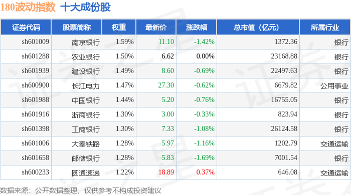 180波动(000129)指数十大成份股详情如下: