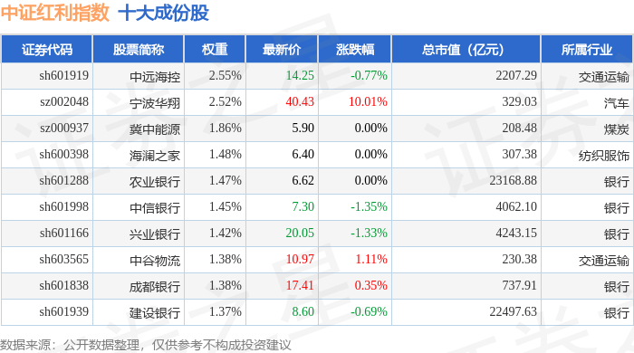 资金流向方面,中证红利(000922)指数成份股当日主力资金净流出合计14.61亿元,游资资金净流出合计1.89亿元,散户资金净流入合计16.49亿元。成份股资金流向详情见下表: