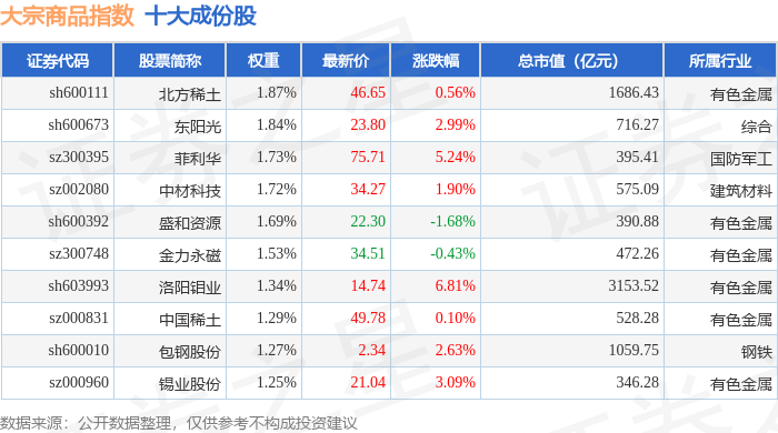 大宗商品(000979)指数十大成份股详情如下: