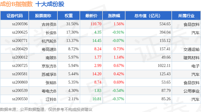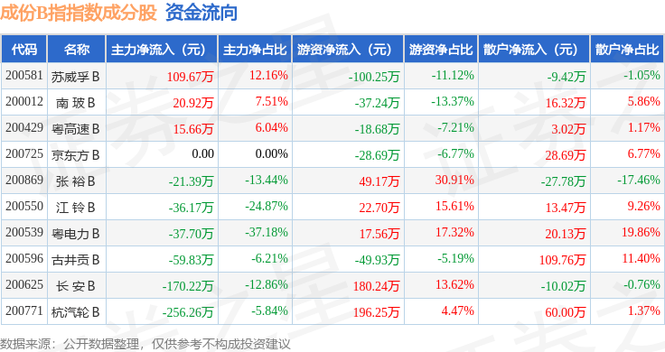 资金流向方面,成份B指(399003)指数成份股当日主力资金净流出合计435.32万元,游资资金净流入合计231.14万元,散户资金净流入合计204.18万元。成份股资金流向详情见下表:
