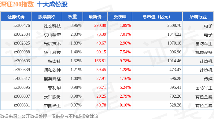深证200(399009)指数十大成份股详情如下: