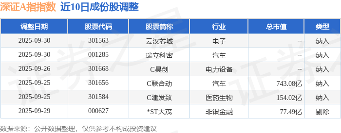 近10日内深证A指(399107)指数成份股做了调整,新纳入了5只股票,剔除了1只股票。