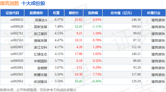 资金流向方面,建筑指数(399235)成份股当日主力资金净流入合计4377.64万元,游资资金净流出合计2.38亿元,散户资金净流入合计1.94亿元。成份股资金流向详情见下表: