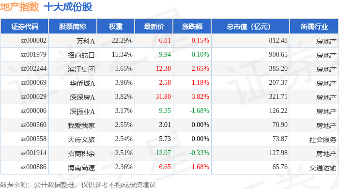 证券之星消息,9月29日,地产指数(399241)报收于1306.7点,涨0.52%,成交90.44亿元,换手率2.24%。当日该指数成份股中,上涨的有26家,世荣兆业以3.91%的涨幅领涨,下跌的有10家,新大正以7.87%的跌幅领跌。