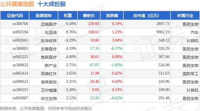 证券之星消息,9月29日,公共健康(399277)指数报收于2801.54点,涨0.67%,成交226.1亿元,换手率2.08%。当日该指数成份股中,上涨的有34家,吉林敖东以6.69%的涨幅领涨,下跌的有14家,英科医疗以3.34%的跌幅领跌。