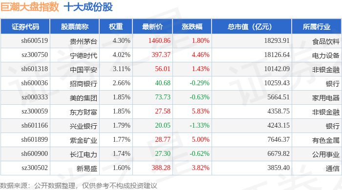 巨潮大盘(399314)指数十大成份股详情如下: