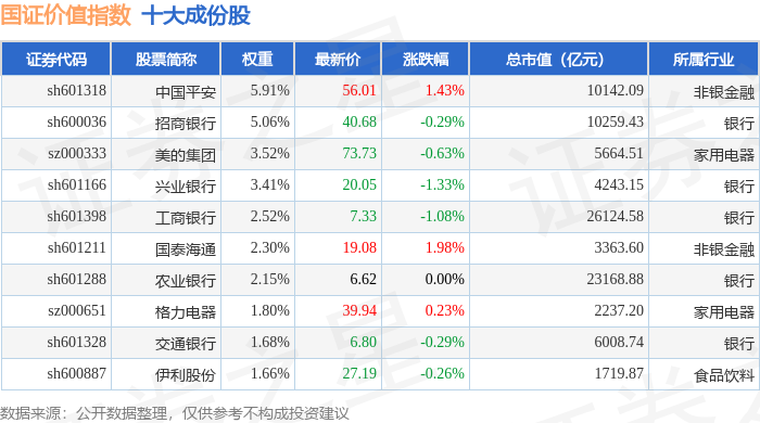 国证价值(399371)指数十大成份股详情如下:
