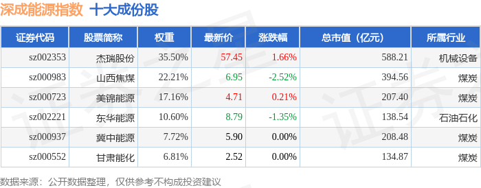 深成能源(399680)指数十大成份股详情如下: