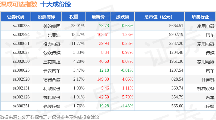 深成可选(399683)指数十大成份股详情如下: