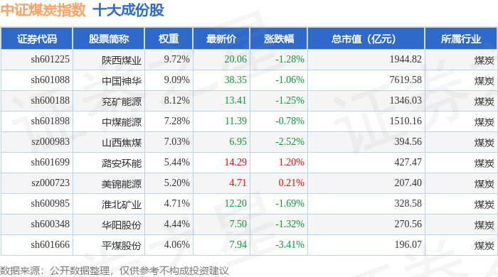 资金流向方面,中证煤炭(399998)指数成份股当日主力资金净流出合计5.32亿元,游资资金净流出合计1.1亿元,散户资金净流入合计6.42亿元。成份股资金流向详情见下表: