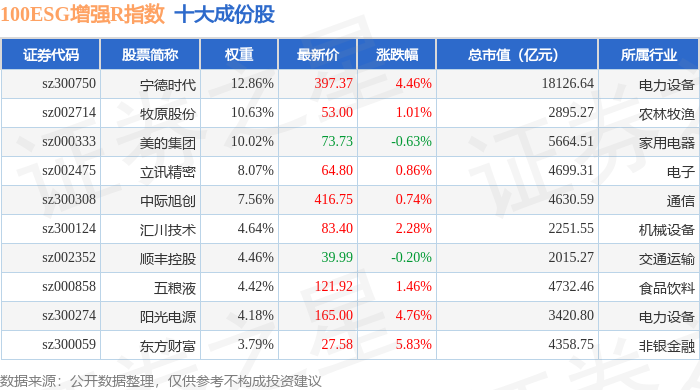 资金流向方面,100ESG增强R(470033)指数成份股当日主力资金净流入合计46.08亿元,游资资金净流出合计9.74亿元,散户资金净流出合计36.34亿元。成份股资金流向详情见下表:
