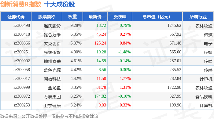 创新消费R(470041)指数十大成份股详情如下:
