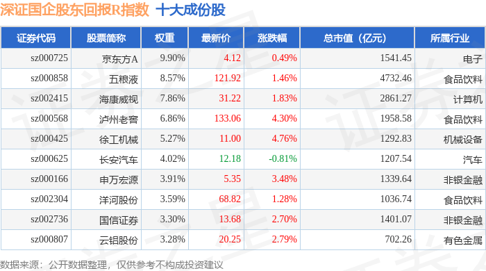深证国企股东回报R(470064)指数十大成份股详情如下: