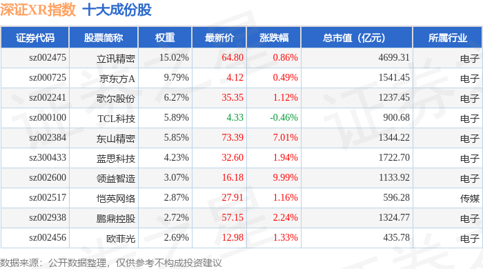 证券之星消息,9月29日,深证XR(970046)指数报收于2370.28点,涨1.42%,成交834.72亿元,换手率3.31%。当日该指数成份股中,上涨的有34家,长盈精密以10.47%的涨幅领涨,下跌的有14家,长信科技以4.73%的跌幅领跌。