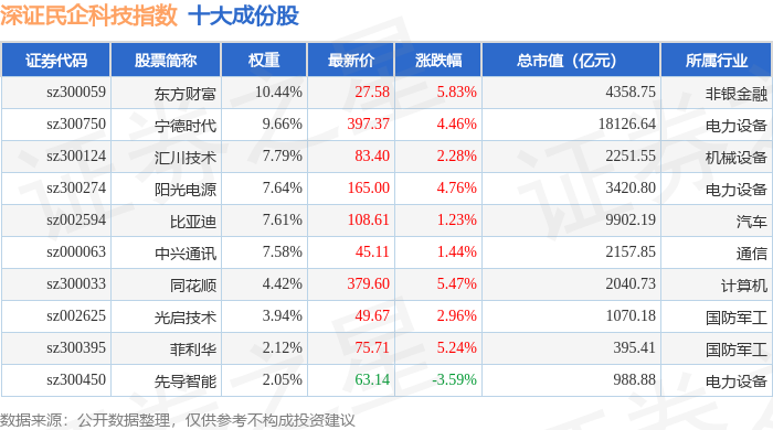 证券之星消息,9月29日,深证民企科技(970059)指数报收于5504.34点,涨2.78%,成交1469.87亿元,换手率4.37%。当日该指数成份股中,上涨的有37家,科达利以10.0%的涨幅领涨,下跌的有13家,先导智能以3.59%的跌幅领跌。