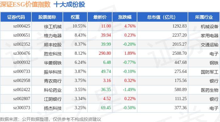 证券之星消息,9月29日,深证ESG价值(970061)指数报收于1649.08点,涨0.85%,成交333.44亿元,换手率1.81%。当日该指数成份股中,上涨的有32家,徐工机械以4.76%的涨幅领涨,下跌的有17家,吉宏股份以9.94%的跌幅领跌。