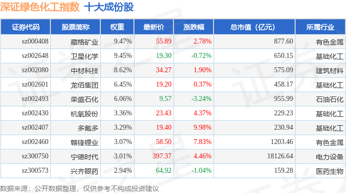 深证绿色化工(970076)指数十大成份股详情如下: