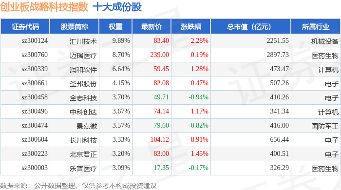 证券之星消息,9月29日,创业板战略科技(971004)指数报收于6711.61点,涨0.89%,成交454.24亿元,换手率3.33%。当日该指数成份股中,上涨的有31家,新雷能以10.59%的涨幅领涨,下跌的有19家,联动科技以3.11%的跌幅领跌。