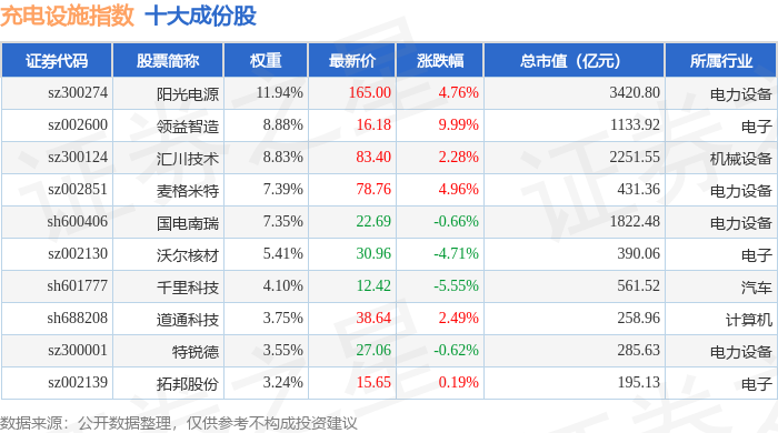 充电设施(980077)指数十大成份股详情如下:
