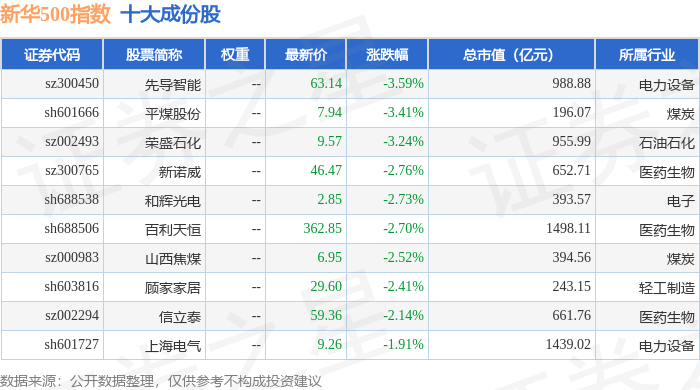 证券之星消息,9月29日,新华500(989001)指数报收于5114.93点,涨1.58%,成交9384.49亿元,换手率1.04%。当日该指数成份股中,上涨的有329家,广发证券以10.02%的涨幅领涨,下跌的有156家,先导智能以3.59%的跌幅领跌。