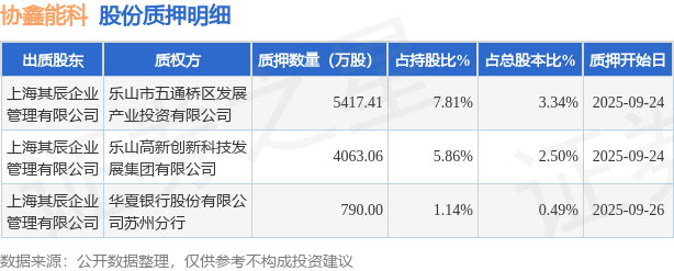 证券之星消息,协鑫能科(002015)9月29日公开信息显示,股东上海其辰企业管理有限公司向乐山市五通桥区发展产业投资有限公司、乐山高新创新科技发展集团有限公司、华夏银行股份有限公司苏州分行合计质押1.03亿股,占总股本6.33%。质押详情见下表: