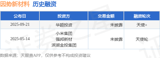 证券之星消息,根据天眼查APP于9月21日公布的信息整理,合肥因势新材料科技有限公司天使+融资,融资额未披露,参与投资的机构包括华颖投资。